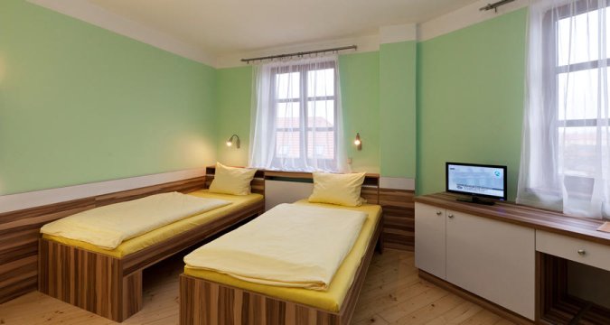Znojmo. Hotel położony w cichej dzielnicy (Přímětice) miasta Znojmo, historycznego centrum południowych Moraw, oddalony 15 km od przejścia granicznego z Austrią. Znojemský zamek z romańską rotundą, kaplica św. Wacława, kościół św. Michała. W okolicy jest Park Narodowy Podyjí. Obiekt blisko innych zabudowań. Jednopiętrowy budynek z poddaszem, restauracja, kawiarnia, bar, drink-bar, w bezpośrednim sąsiedztwie winiarnia w piwnicy z XVIII w. Parking. Przystanek autobusowy w pobliżu hotelu. Zakwaterowanie w pokojach 2,3 os., w każdym pokoju telefon, TV, mini bar, radio budzik, łazienka z WC, wanną. Pokoje przestronne i słoneczne. Restauracja oferuje szeroki wybór potraw kuchni czeskiej i międzynarodowej oraz morawskich win.