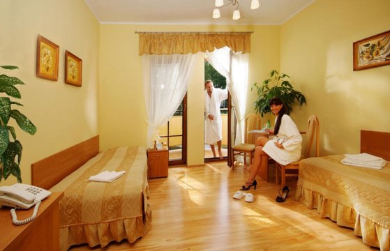 ZAMECZEK to odrestaurowany i rozbudowany, komfortowy obiekt, pięknie położony w samym sercu Parku Zdrojowego. W odległości ok. 80 m znajduje się Zakład Przyrodoleczniczy, w którym oprócz całej gamy zabiegów leczniczych można skorzystać również z relaksu w grocie solno-jodowej a także z kuracji pitnej w pięknej pijalni wód mineralnych. Obiekt posiada nowoczesny kompleks basenowy z saunami, jacuzzi i natryskami wodnymi Słoneczne Termy Zameczek. Tuż przy obiekcie znajduje się nowoczesny AQUA PARK z wodnymi masażami i zjeżdżalniami.