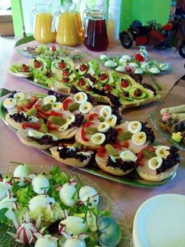 - 3 posiłki dziennie w formie szwedzkiego stołu: śniadanie, obiad, kolacja
