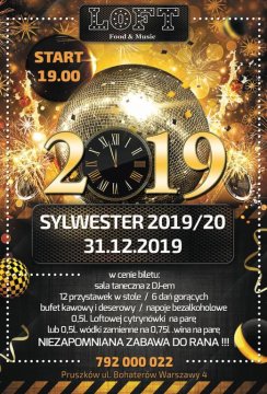 Bal Sylwestrowy 2019/2020 w Restauracji LOFT w Pruszkowie