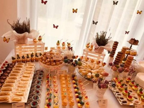 - Bankietówki, muffinny /cupcake, cake popsy ,mini donuty, mini eklerki, ptysie i beziki; pucharki z musami o różnych smakach, tiramisu, krem z białej czekolady