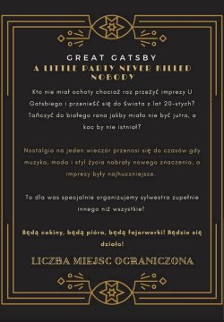 Kto nie miał ochoty chociaż raz przeżyć imprezy u Gatsbiego i przenieść się do świata z lat 20-stych? Tańczyć do białego rana jakby miało nie być jutra, a kac by nie istniał?