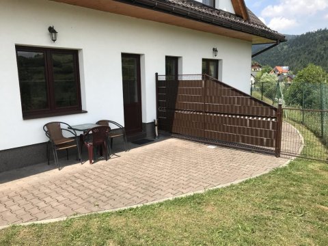 Zapraszamy Państwa do naszych komfortowo urządzonych domków położonych w zacisznym i malowniczym zakątku Szczawnicy na zboczu góry z bajecznymi widokami na Pieniny tuż przy szlaku na Przehybę (1173m) . W okresie sylwestrowym przy min pobytu 5 noclegów, wynajmujemy całe domki /112m2/ z 4 pokojami dla max. 10 osób, w cenie 1400zł/doba za domek. Domek z 2 Pół apart 2 osob i dwoma 3 osob i łazienkami, kompletnie wyposażonymi aneksami kuchennymi (m.in. lodówka, kuchenka), mikrofale.TV naziemna z możliwością podłaczenia własnego dekodera, internet...Domki znajdują się na terenie zamkniętym, monitorowanym przez całą dobę. Parking znajduje się wewnątrz terenu zamkniętego. Pokoje na parterze posiadają tarasy widokowe z których rozciągają się przepiękne widoki na Pieniny.Obok jadłodajnia.