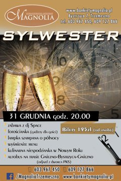 Zapraszamy na szampańską zabawę sylwestrową od godziny 20.00 do Centrum Konferencyjno-Wypoczynkowego Magnolia.