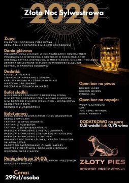 Złota Złota Noc Sylwestrowa w Restauracji & Browarze Złoty Pies