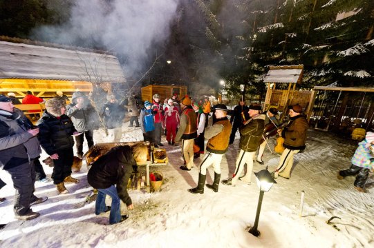 Po kuligu, zaprosimy wszystkich do ogniska, gdzie przy muzyce góralskiej w asyście zbójników wyprawimy góralską zabawę. Podczas całej imprezy przygrywać będzie kapela góralska, a uczestnicy będą zabawiani żartami i historiami o Tatrach i góralach. W programie: witacka, czyli przywitanie naszych gości góralską serdecznością i muzyką, pokazy tańców góralskich, góralskie przypowieści, nauka picia po góralsku – poczęstunek gorzałką zbójecką, wspólne śpiewanie przy ognisku!