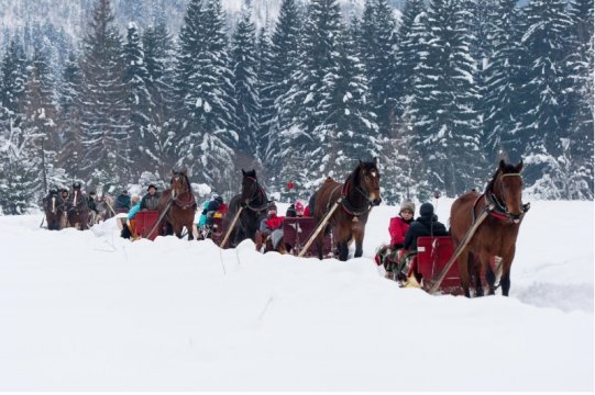 – tradycyjny góralski kulig saniami po Krzeptówkach, zakończony kolacją przy grillu oraz wielkim ognisku – będzie dobra zabawa, tańce, góralska muzyka na żywo
