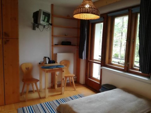 Oferujemy nocleg dla 5 osób w bardzo ładnych i wygodnych pokojach 2 i 3 osobowym. Pokoje usytuowane na I pietrze domu, mają własne łazienki oraz nową i całkowicie wyposażoną kuchnię na tej samej kondygnacji. Każdy pokój ma balkon, widok na Giewont, podwójne łóżko, tv.